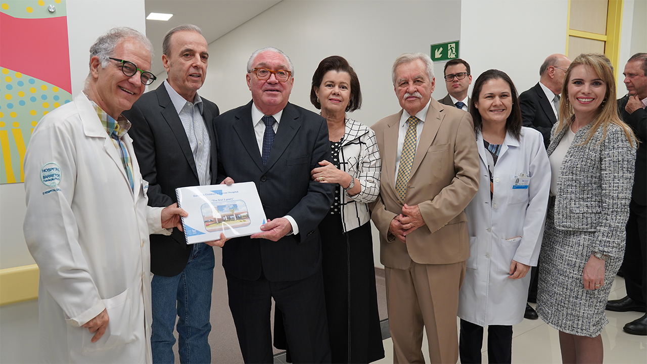 O presidente do TJSP, desembargador Manoel de Queiroz Pereira Calças, visitou a unidade infantojuvenil do HA ao lado do diretor médico, Dr. Luiz Fernando Lopes, do presidente da instituição, Henrique Prata, sua esposa Maria Amélia Junqueira de Andrade Pereira Calças, do integrante do Conselho Curador do HA, Hélio Rubens Pereira Navarro, da oncologista e coordenadora do Centro de Transplante de Medula Óssea Pediátrico, Dra. Neysimélia Villela e da magistrada de Barretos e diretora do fórum, Fernanda Martins Perpetuo de Lima Vazquez.