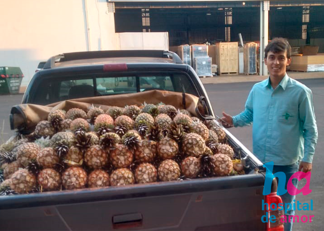 Joelmir e Rodrigo Lago de Aparecida de Minas (MG) doaram 4.500 abacaxis para o Hospital de Amor.