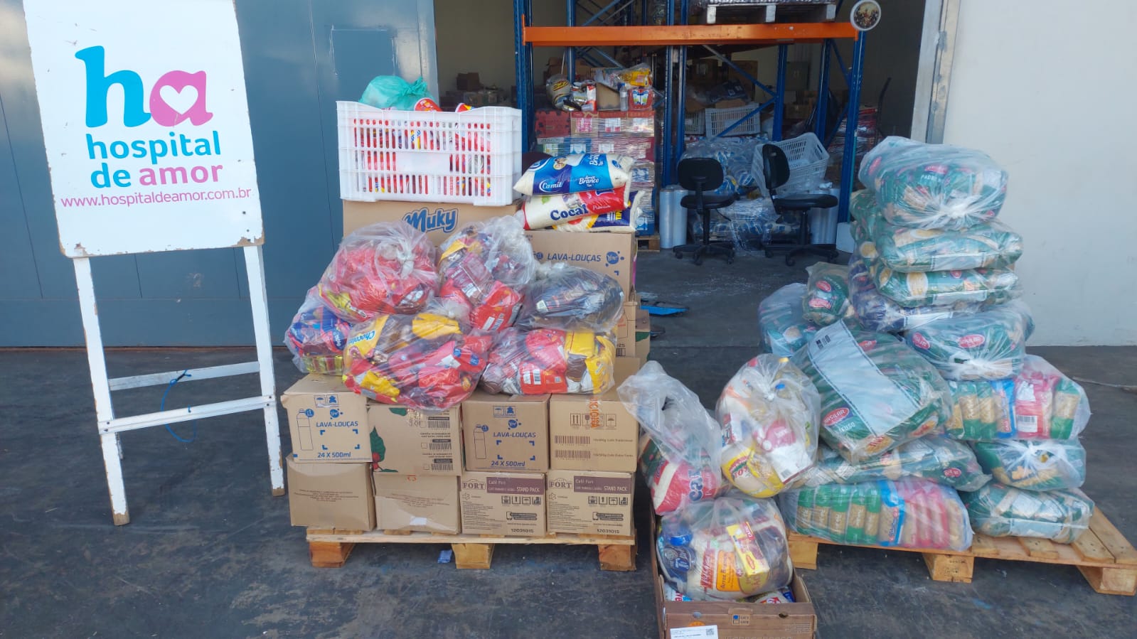 A instituição foi presenteada com 25 fardos de macarrão ,19 caixas de café é 06 caixas de achocolatado. Essa doação especial é de extrema importância para o HA.