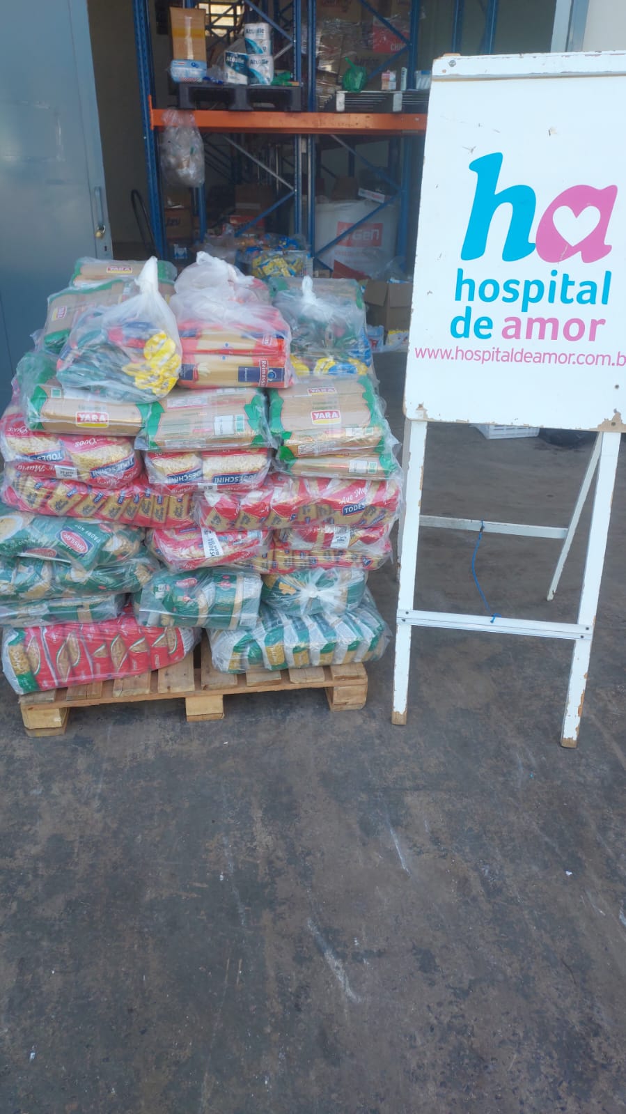 A instituição foi presenteada com 500 kg macarrão. Essa doação especial é de extrema importância para o HA.