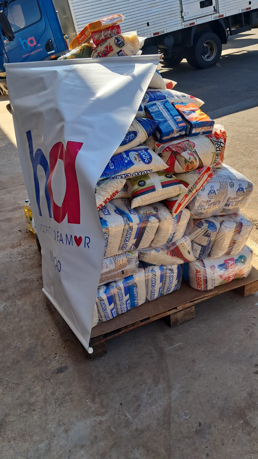 A instituição foi presenteada com 300 kg de arroz. Essa doação especial é de extrema importância para o HA.