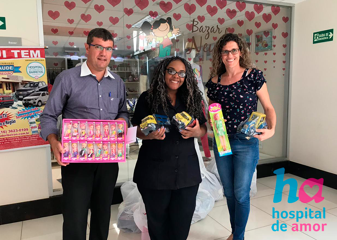 Helder Silva Macedo e Patrícia de Luís Bady Bassitt – SP arrecadaram em uma missão de amor 150 brinquedos. Com muita alegria em ajudar o próximo. Nós do Hospital do Amor agradecemos imensamente esse ato de carinho, pois cada doação nos ajuda a continuar nosso trabalho de salvar vidas.