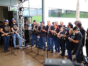Para fechar com chave de ouro, a dupla cantou dois dos seus maiores sucessos (“Camaro Amarelo” e “A Bela e a Fera”) com o coral e emocionou todas as pessoas que ali estavam. No final, um delicioso almoço com algumas das delícias do Festival de Arroz foi servido – um convite mais do que especial para a grande festa!