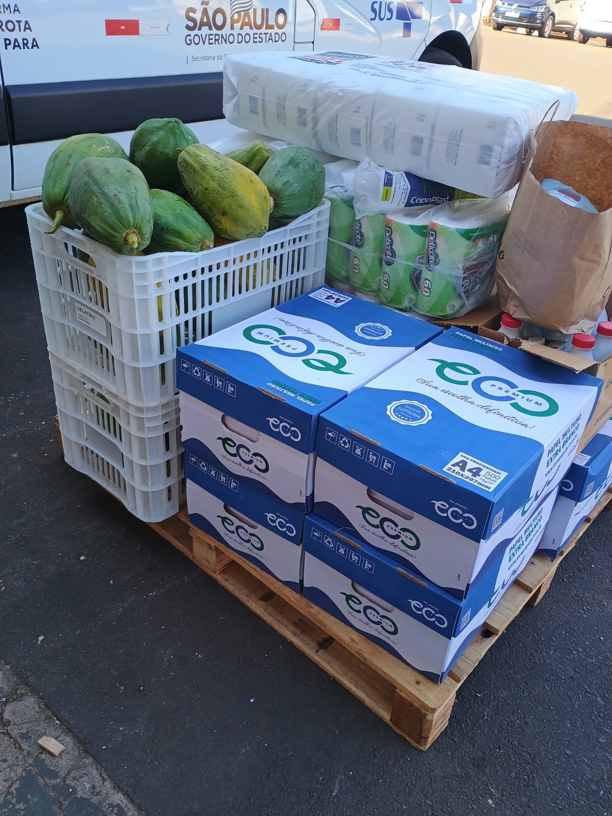 A instituição foi presenteada com papel sulfite, papel higiênico, 1 caixa de leite, 2 kg de farinha de trigo, 5 kg de sal e 2 caixas de mamão. Essa doação especial é de extrema importância para o HA.