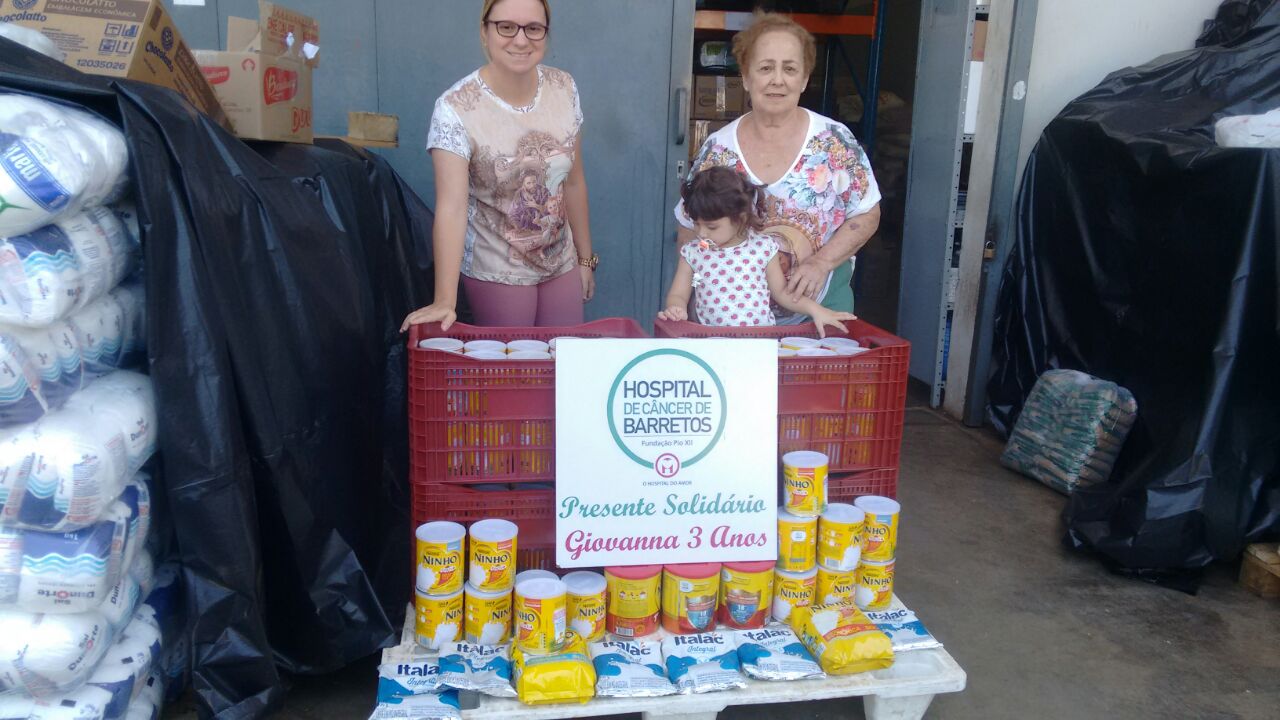 Giovana de Birigui (SP) doou 172 latas de leite em pó para o Hospital de Amor.