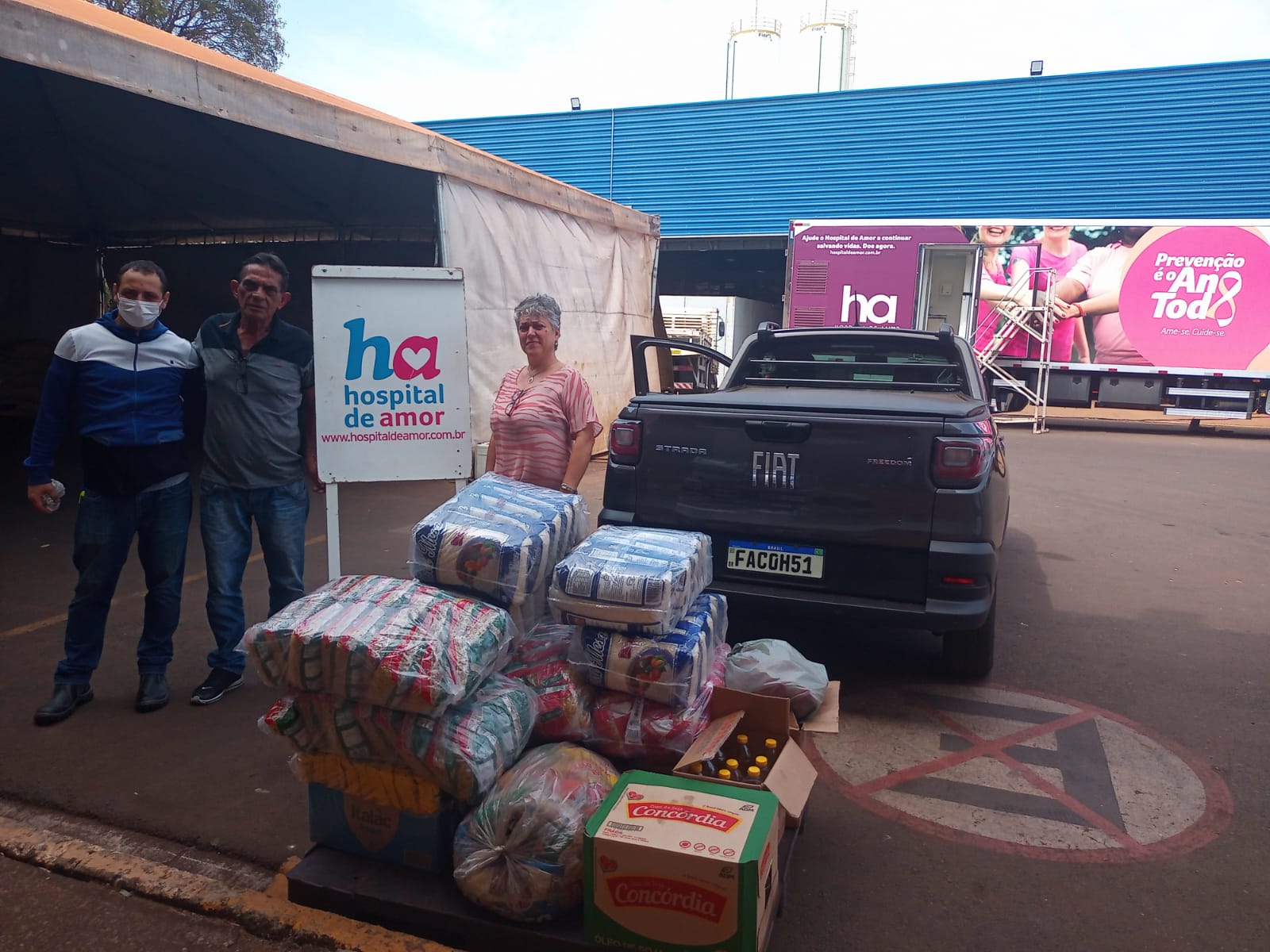 O Hospital de Amor recebeu do doador Vagner, do município de Bragança Paulista (SP), uma entrega de produtos alimentícios. A instituição foi presenteada com 4 pacotes de macarrão parafuso, 4 caixa de leite, 37 litros de óleo, 10 pacotes de café, 60 kg de açúcar refinado, 4 fardos de arroz e 30 kg de feijão. Essa doação especial é de extrema importância para o HA.