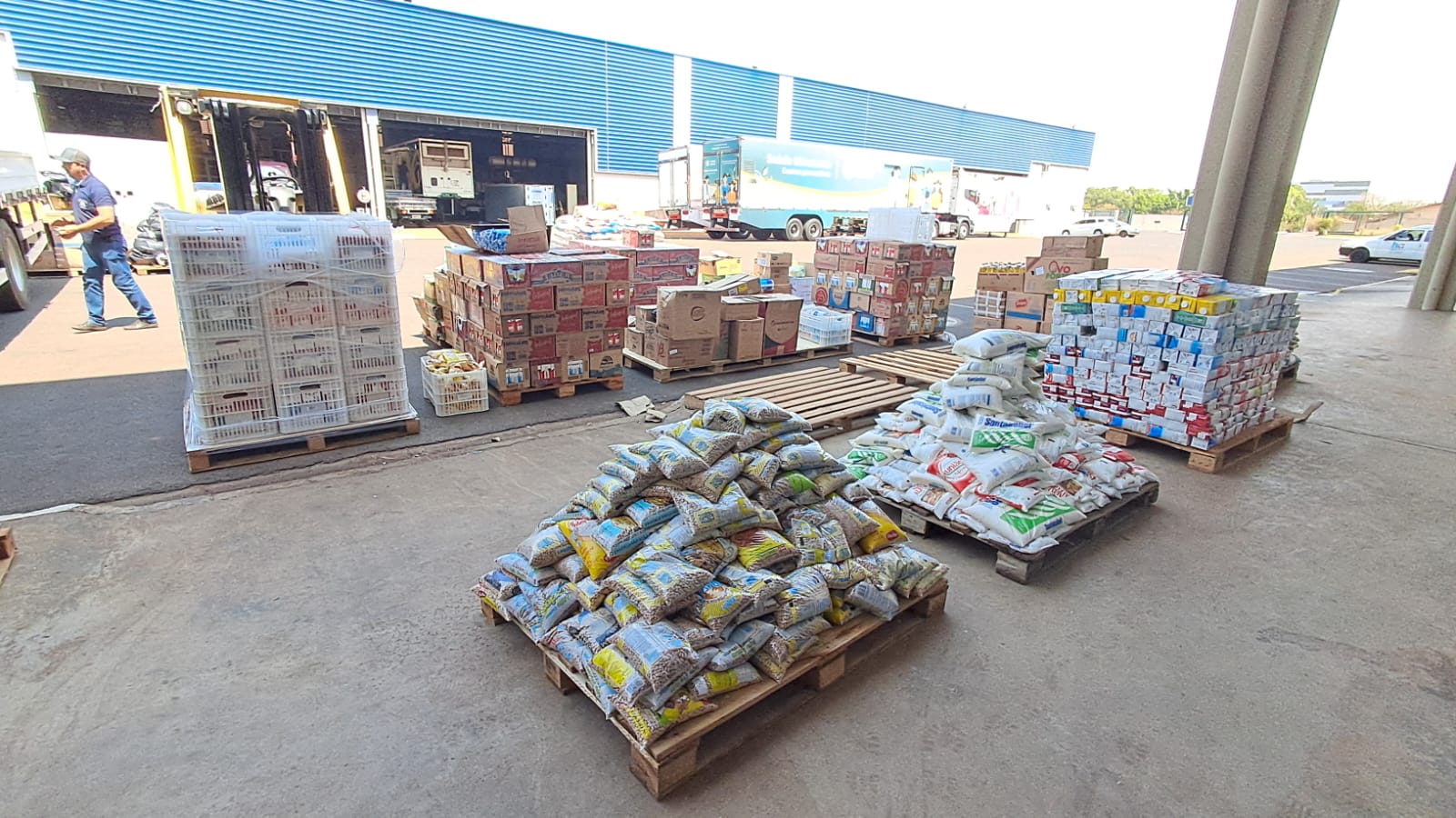 A instituição foi presenteada com 1170 kg de arroz, 510 kg de feijão, 12 kg de feijão preto, 386 kg de açúcar, 650 L de óleo, 4097 L de leite, 30 kg de café, 5.570 kg de achocolatado, 5 unidades de chocolider, 3 pacotes de chá mate, 1 unidade de suco de laranja, 83 kg de sal, 1373 pacotes de macarrão, 18 unidades de Nissin, 170 unidades de molho de tomate, 140 kg de farinha de trigo, 44 pacotes de farinha de mandioca, 8 pacotes de farinha temperada, 1 unidade de farinha de arroz, 2 unidades de farinha de aveia, 103 pacotes de fubá, 1 pacote de flocão, 2 pacotes de milharina, 1 pacote de cuscuz, 1 pacote de griz de milho, 4 pacotes de polvilho, 4 pacotes de amido de milho, 5 unidades de pipoca, 2 pacotes de sagu, 1 unidade de biscoito de polvilho, 160 pacotes de bolacha, 4 unidades de torrada, 2 unidades de pão de forma, 1 unidade de panetone, 2 unidades de massa de bolo, 170 unidades de gelatina, 8 unidades de goiabada, 11 unidades de creme de leite, 6 unidades de leite em pó,11 unidades de leite condensado, 25 unidades de sardinha, 5 unidades de atum, 1 unidade de azeitona, 8 unidades de vinagre, 5 unidades de tempero pronto, 1 unidade de queijo ralado, 1 unidade de alho frito, 1 unidade de creme de cebola, 1 unidade de colorau, 1 unidade de batata palha, 2 unidades de risoto, 4 unidades de papel higiênico, 10 unidades de detergente, 1 unidade de sabão em pó, 1 unidade de sabão em barra, 2 unidades de bombril, 20 unidades de creme dental, 54 unidades de sabonete e 2 pacotes de fralda. Essa doação especial é de extrema importância para o HA.
