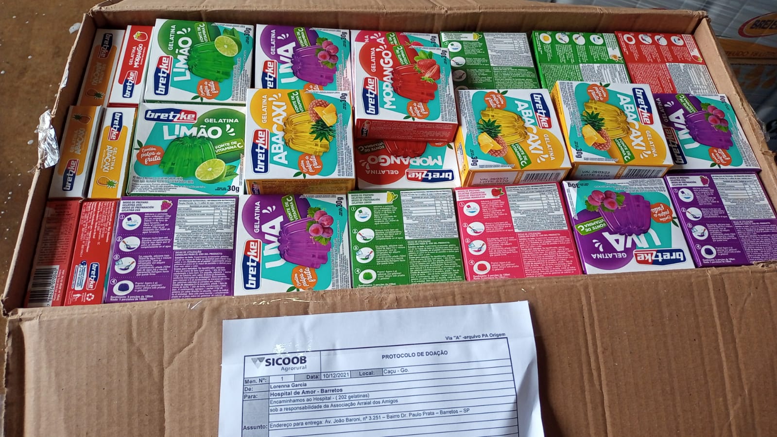 O Hospital de Amor recebeu da empresa ‘Sicoob’, do município de Caçu – GO, uma entrega de produtos alimentícios, presenteando a instituição com gelatinas. Essa doação especial é de extrema importância para o HA. Agradecemos a generosidade de todos os envolvidos e o carinho com o Hospital!