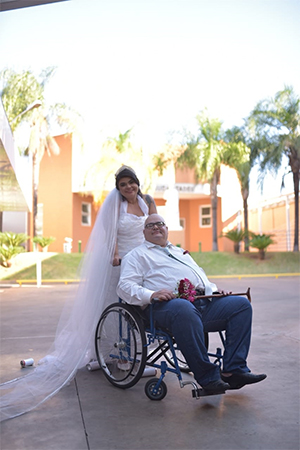 Juntos há mais de 10 anos, porém, sem nunca terem oficializado o matrimônio em uma cerimônia religiosa, os dois viveram momentos de felicidade e muito romantismo no último dia 5 de março. Ao saber do desejo do casal, a equipe multidisciplinar do hospital logo começou a organizar os preparativos, contatar os parceiros e, em apenas cinco dias, estava tudo pronto! “Essa festa foi a realização de um sonho, não apenas para o casal, mas para nós também. Quando eles nos contaram sobre esse desejo, nós fizemos de tudo para que fosse realizado da maneira mais linda e inesquecível possível para eles”, explicou a assistente social da unidade, Desiane Pereira.