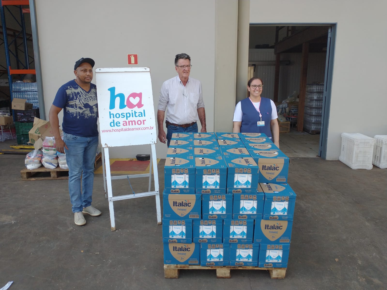 O Hospital de Amor recebeu do João Belentario e amigos, do município de Dobrada (SP), uma entrega de produtos alimentícios. A instituição foi presenteada com 804 litros de leite. Essa doação especial é de extrema importância para o HA.