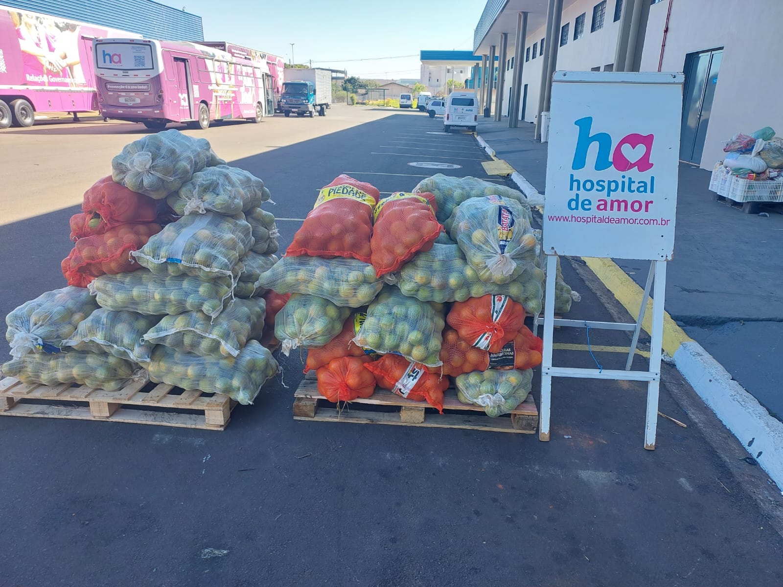 O Hospital de Amor recebeu, do município de Embaúba (SP), uma entrega de produtos alimentícios. A instituição foi presenteada com 1.100 kg de laranja. Essa doação especial é de extrema importância para o HA.