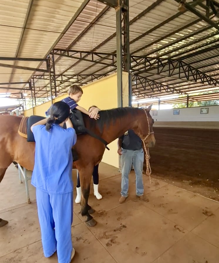 A equoterapia – ou terapia assistida por cavalos – é um método terapêutico que utiliza o cavalo, para promover um desenvolvimento biológico, psicológico e social dos pacientes pediátricos do Centro de Reabilitação do HA, em Barretos (SP). Durante as seções, os pacientes trabalham mobilidade, fortalecimento da pelve, coluna, tônus, controle da cabeça e tronco, além da interação sensorial, como explica a fisioterapeuta do HA, Dilene Nunes Brianez.