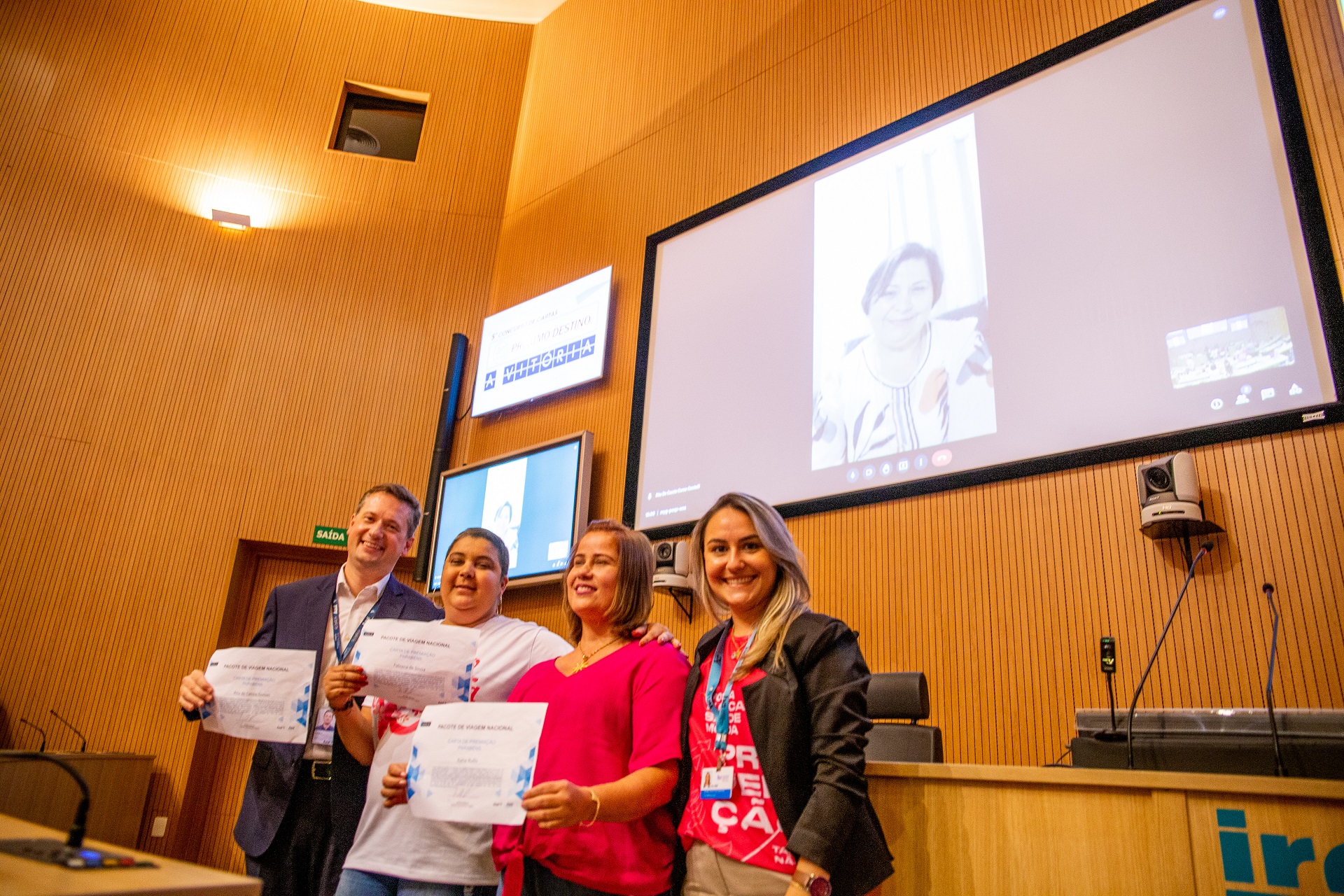 Rubens Schaefer e Aline Dias ao lado das vencedoras: Rita (por videochamada), Fabiana e Kátia.