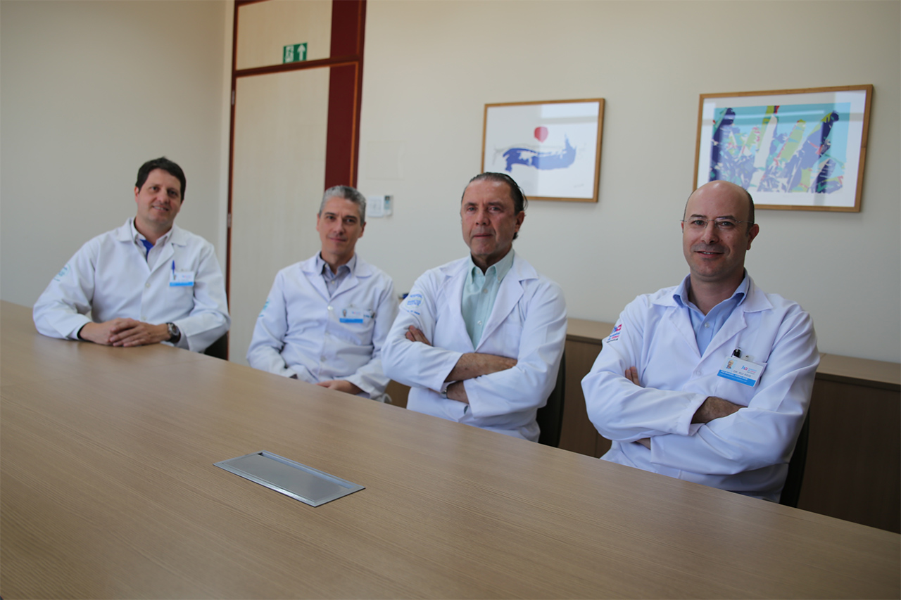 Da esquerda para a direita: Dr. Vinícius Vazquez (diretor de extensão); Dr. Ricardo Reis (diretor de ensino); Dr. Edmundo Mauad (diretor técnico); e Dr. Rui Reis (diretor científico e executivo do IEP).