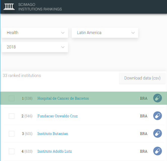 O Hospital de Amor Barretos recebeu uma grande notícia na última semana! A instituição conquistou a primeira colocação no levantamento da Scimago Institutions Rankings (SIR), entre os centros de saúde que atuam na área de pesquisa na América Latina. O SIR é um recurso internacional de avaliação científica para classificar universidades e instituições (públicas ou privadas), que revela algumas das principais dimensões (pesquisa, inovação e impacto social) do desempenho de pesquisa de instituições dedicadas à área em todo o mundo. O objetivo do ranking é fornecer uma ferramenta métrica útil para as entidades, formuladores de políticas e gerentes de pesquisa para a análise, avaliação e melhoria de suas atividades, produtos e resultados.