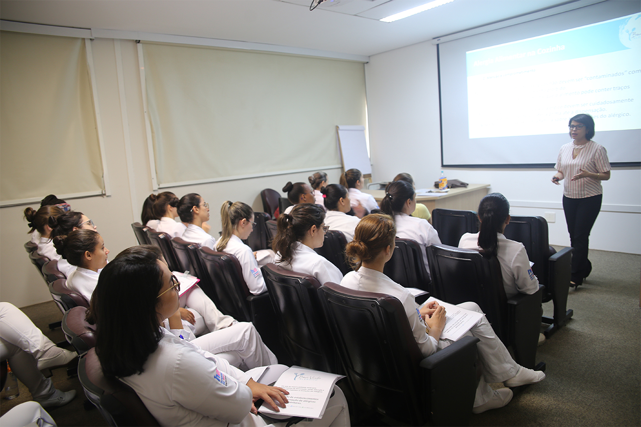 Nos dias 20 e 21 de fevereiro, cozinheiros e auxiliares da instituição participaram da capacitação. Já nos dias 27 e 28, foi a vez dos nutricionistas, técnicos e residentes em nutrição receberem as orientações. Através de treinamentos personalizados, os profissionais tiveram a oportunidade de aprender mais sobre o que é a alergia alimentar; os riscos para a vida dos pacientes e colaboradores que sofrem com essa reação; as diferenças entre alergia e intolerância; alergia alimentar em pacientes imunodeprimidos; os cuidados nas preparações dos alimentos; alternativas de substituição dos alimentos, além da revisão de mapeamento de riscos dentro da cozinha da instituição.