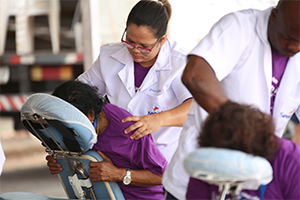 Os idosos foram recepcionados com massagem relaxadora.