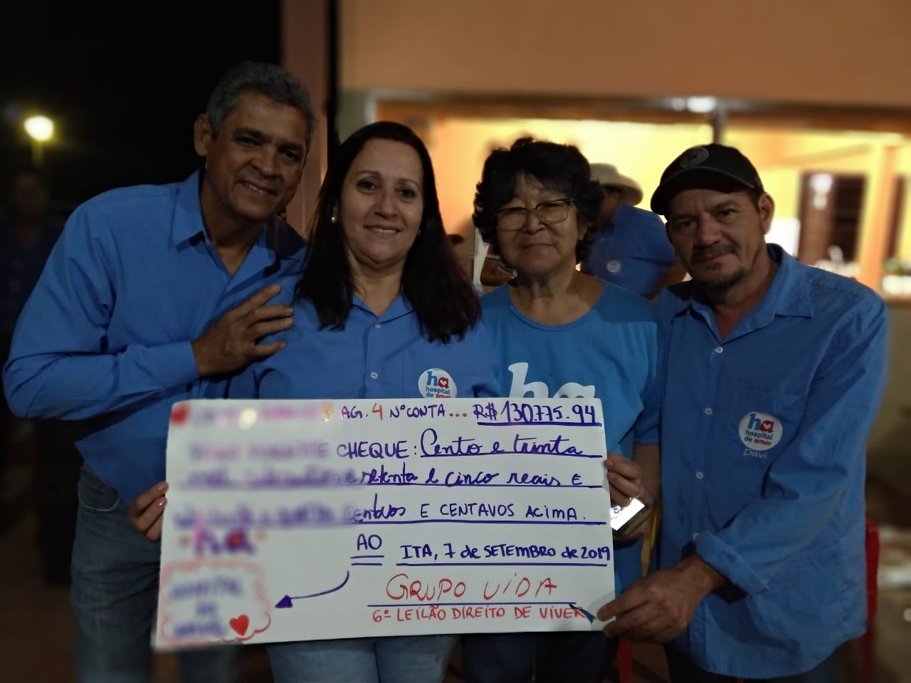 O 6º Leilão “Direito de Viver” de Itapura (SP) aconteceu dia 18/8/2019, no Assentamento Roseli Nunes. Quem comandou o evento foi a coordenadora Massako Shimono e comissão, responsáveis por arrecadar 80 cabeças de gado e outras prendas, contabilizando R$ 130.775,94. O Hospital de Amor agradece todos os doadores, arrematadores, voluntários e população, da cidade e região. Muito obrigado!