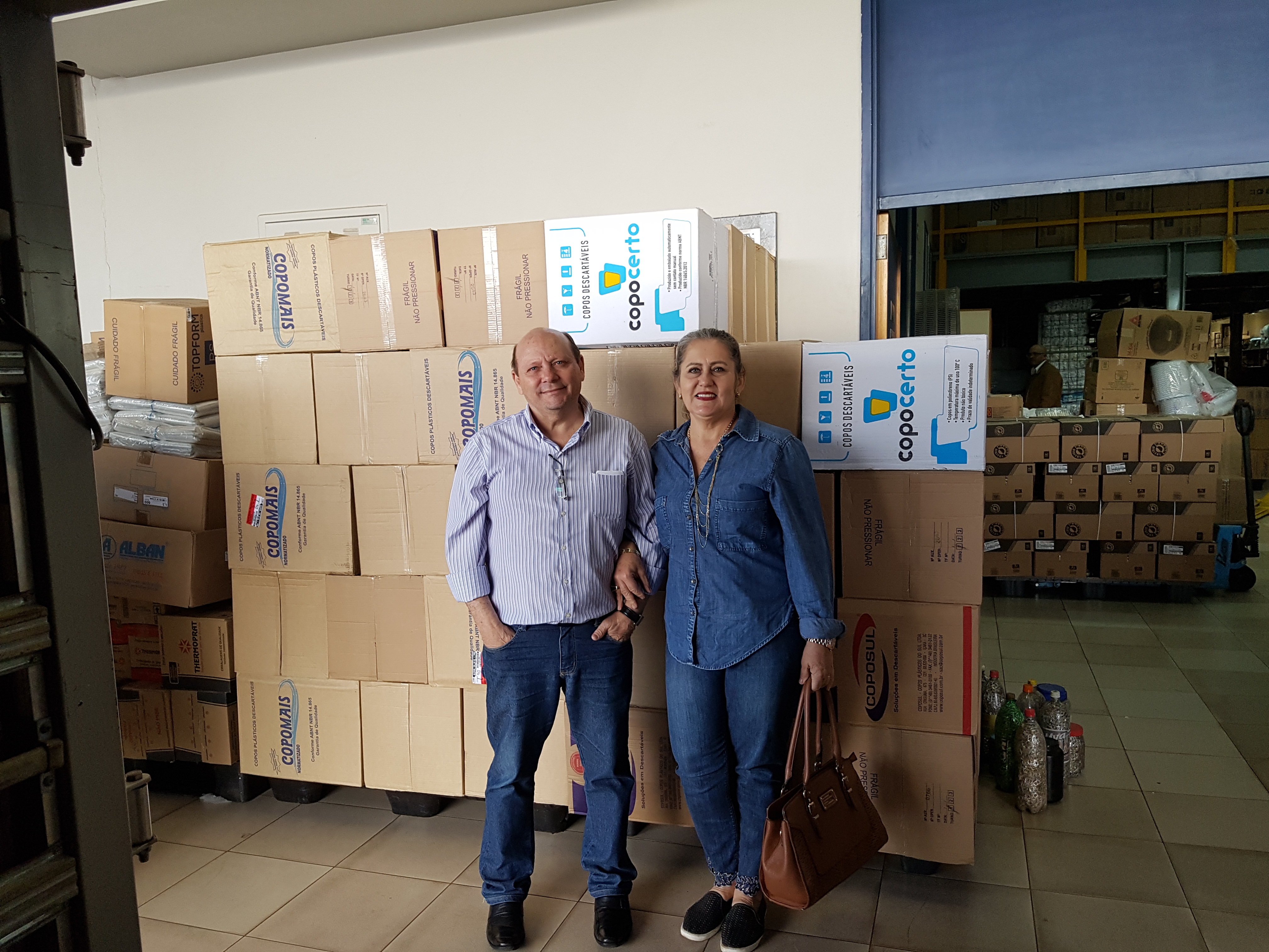 Odair e Noce Cavassana de Nova Granada (SP) doaram 165.000 copos e 11 garrafas de lacres para o Hospital de Amor.