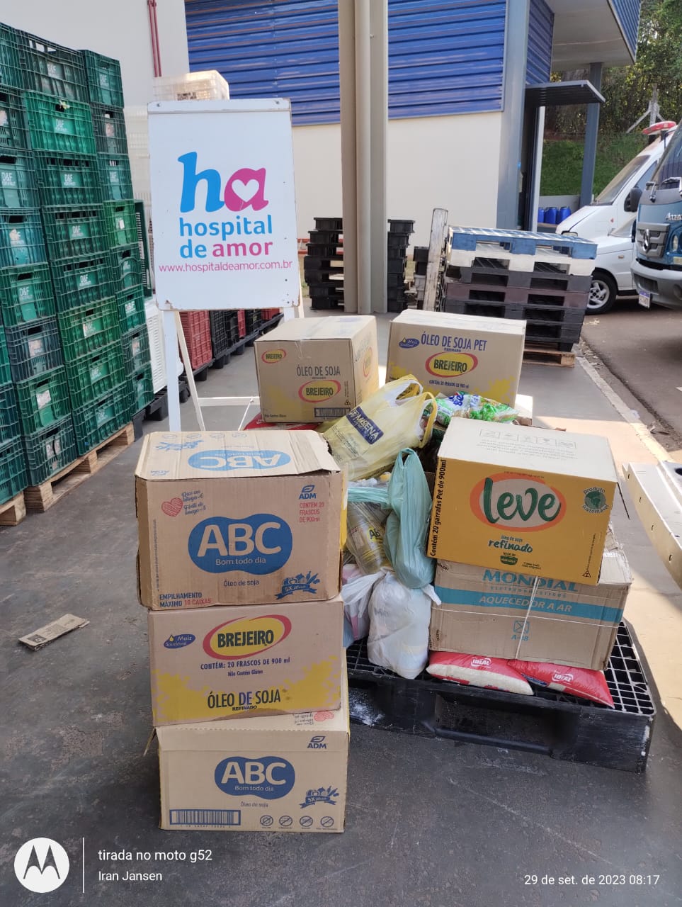O Hospital de Amor recebeu do Tangará Aero agrícola, do município de Orlândia (SP), uma entrega de produtos alimentícios. A instituição foi presenteada com alimentos diversos. Essa doação especial é de extrema importância para o HA.