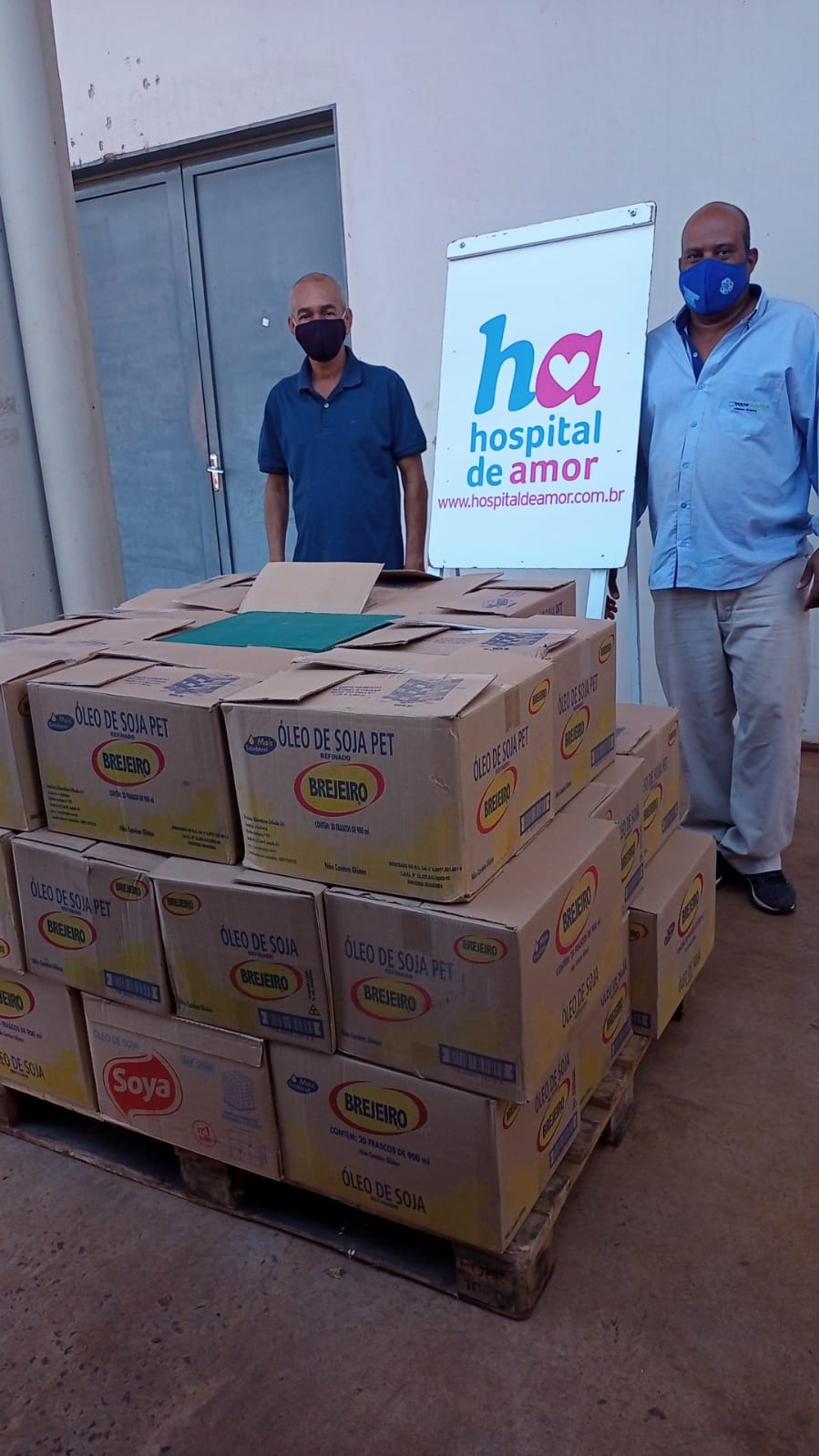 A solidariedade do Grupo Alma que veio da cidade de Orlândia – SP, junto com os senhores José Roberto e Marcos, realizou uma entrega de produtos alimentícios, presenteando o hospital com 580 litros de óleos. Essa doação especial é de extrema importância para a manutenção da alimentação do Hospital de Amor. Agradecemos a generosidade de todos os envolvidos, e o carinho com o Hospital!