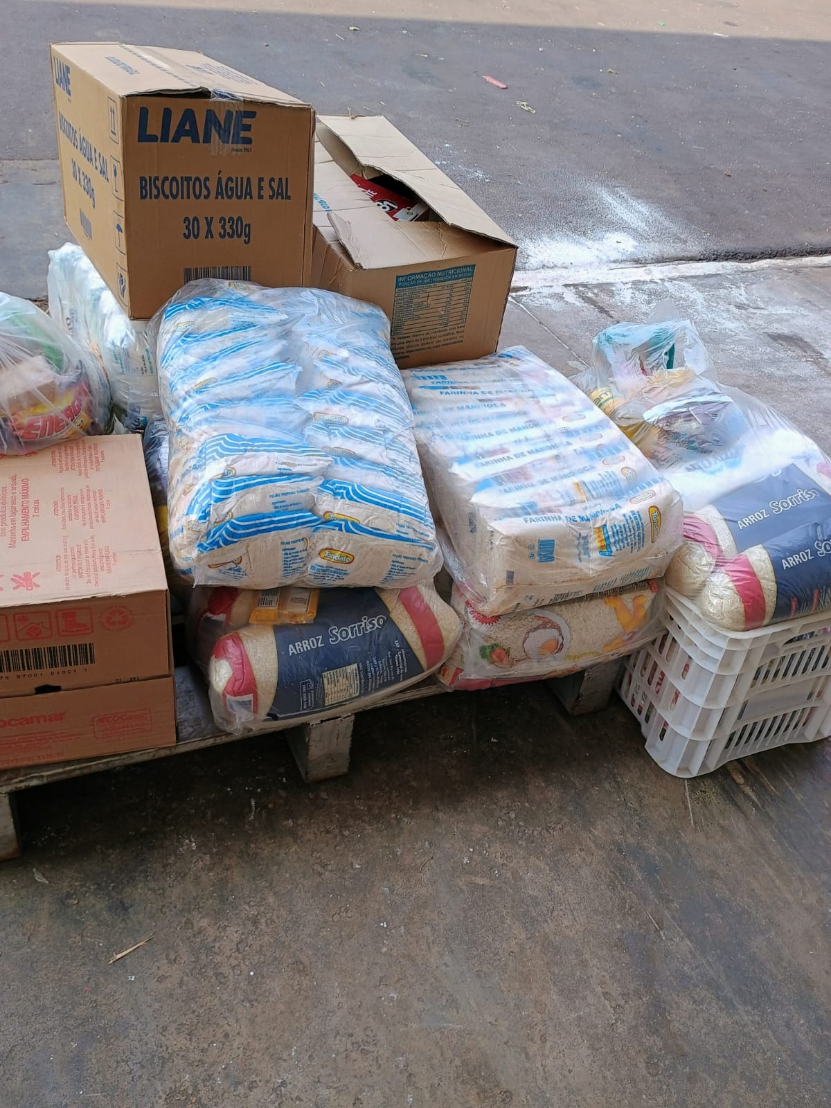 A instituição foi presenteada com 3 fardos de farinha de mandioca, 2 cesta básica, 1 caixa de óleo, 1 fardo de macarrão, 1 fardo de açúcar e 1 caixa de bolacha água e sal. Essa doação especial é de extrema importância para o HA.