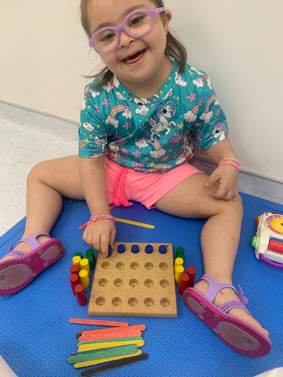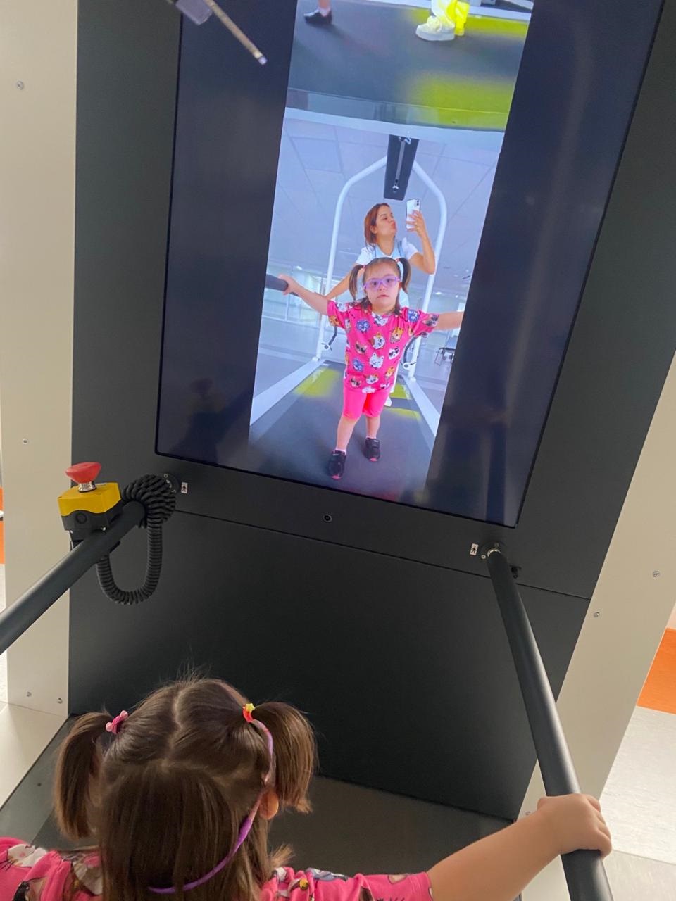 E não foi só na fala que Gigi vem se desenvolvendo. Quando iniciou o tratamento, ela também apresentava dificuldades na parte motora, como explica a fisioterapeuta do HA, Vitória Silva Souza. “A Gigi tinha bastante dificuldade no que a gente chama de marcha com base alargada, na rotação externa de quadril bilateral e tinha histórico de quedas recorrentes da própria altura. Com a reabilitação, o desempenho dela está sendo excelente, atingindo os objetivos terapêuticos que são otimizar marcha, melhorar equilíbrio, reduzir quedas, ajustar a postura e otimizar força muscular global”, destaca a fisioterapeuta.
