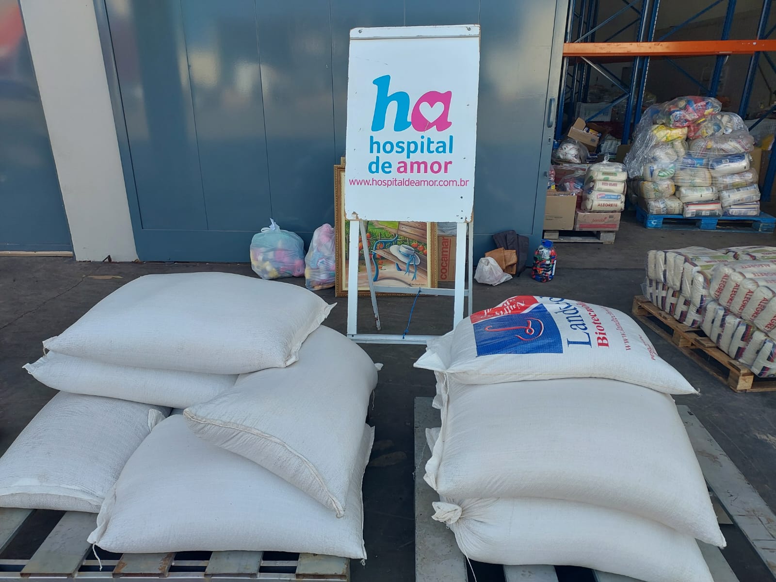 O Hospital de Amor recebeu dos doadores Márcio Antônio Pacífico e Leila Maria Mazon, do município de Rancharia (SP), uma entrega de produtos alimentícios. A instituição foi presenteada com 640 kg de feijão. Essa doação especial é de extrema importância para o HA.