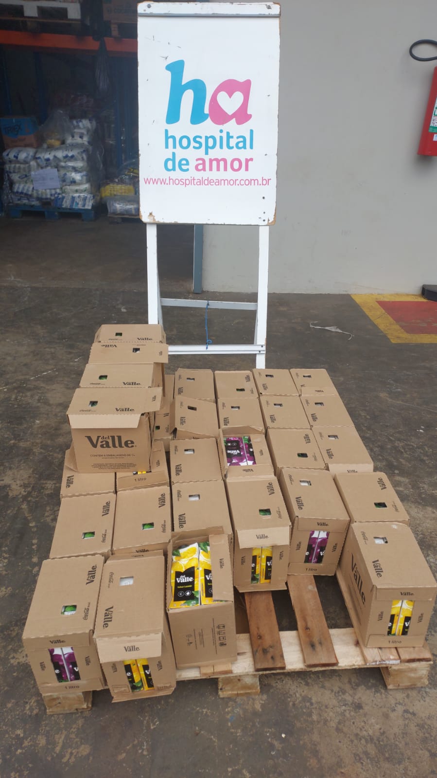 A instituição foi presenteada com 192 litros de suco Dell Vale. Essa doação especial é de extrema importância para o HA.