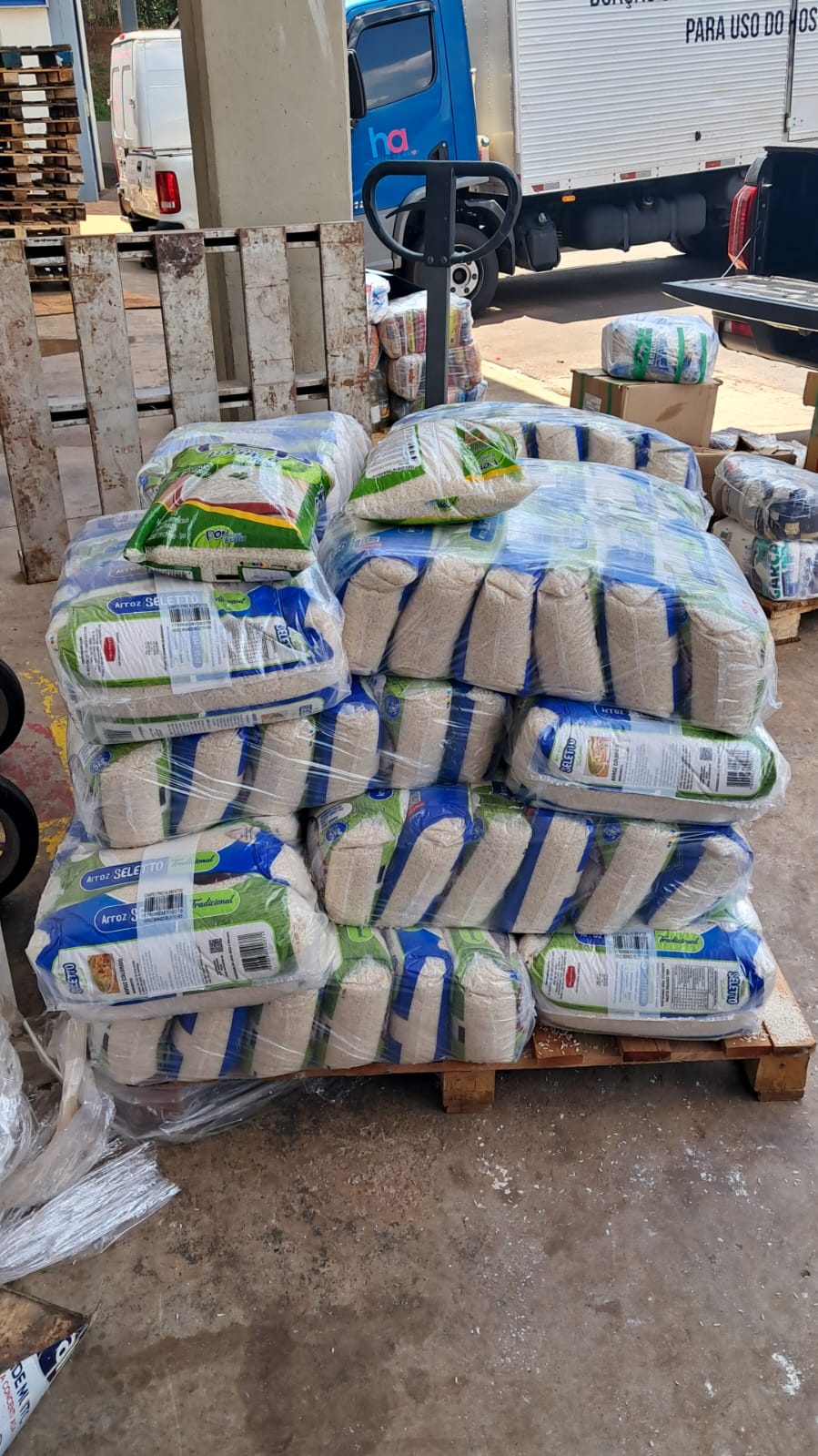 A instituição foi presenteada com 20 fardos de arroz. Essa doação especial é de extrema importância para o HA.