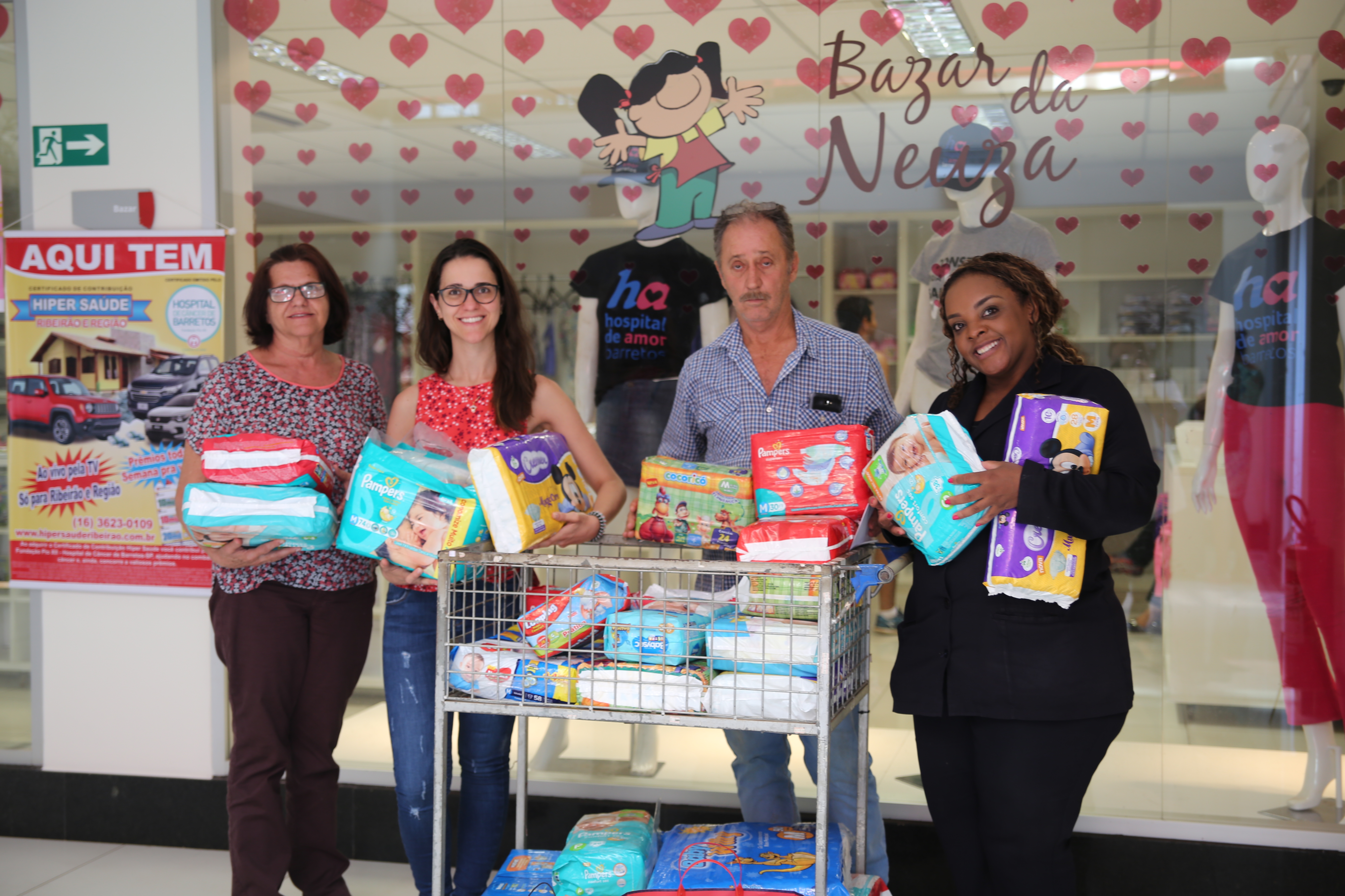 Thaine Clemente e Caio Faustino de São Paulo (SP) doaram diversos lenços umedecidos e fraldas para o Hospital de Amor.