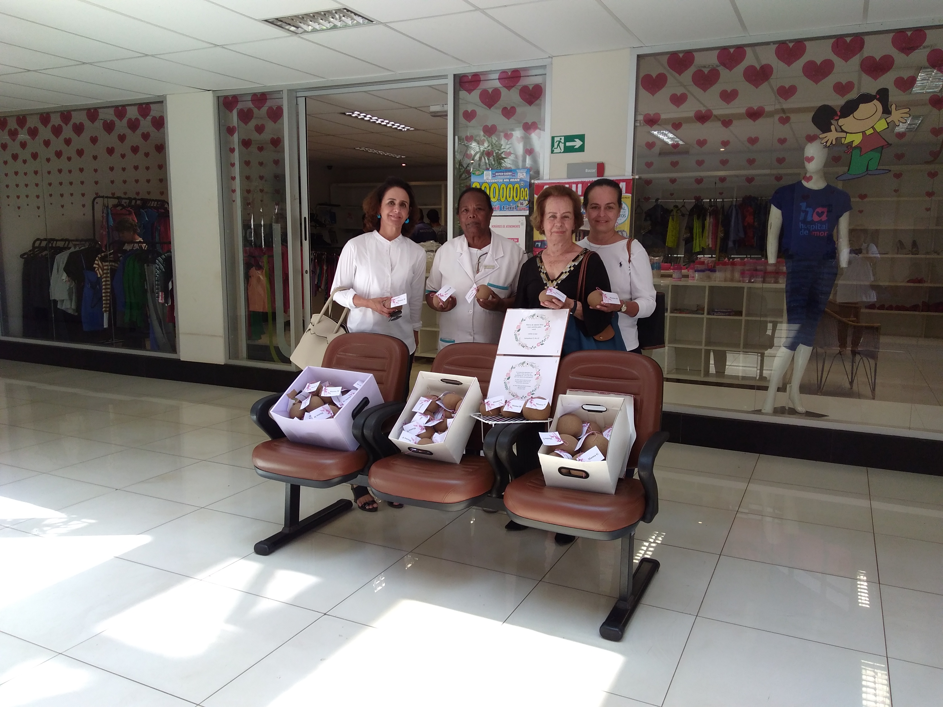 Dinah Toledo, Maria Angela e Ana Rosa de Barretos (SP) doaram 80 próteses mamárias de alpiste nos tamanhos p, m e g para o Hospital de Amor.