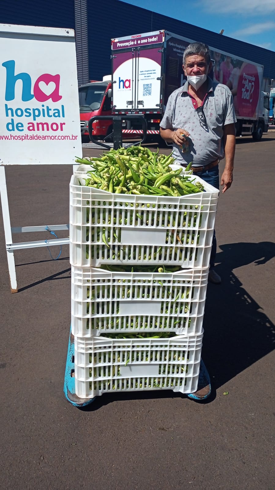 O Hospital de Amor recebeu do senhor Salvador Viana, do município de Colômbia – SP, uma entrega de produtos alimentícios, presenteando a instituição com 9 caixas de quiabo. Essa doação especial é de extrema importância para o HA! Agradecemos a generosidade de todos os envolvidos e o carinho com o Hospital!