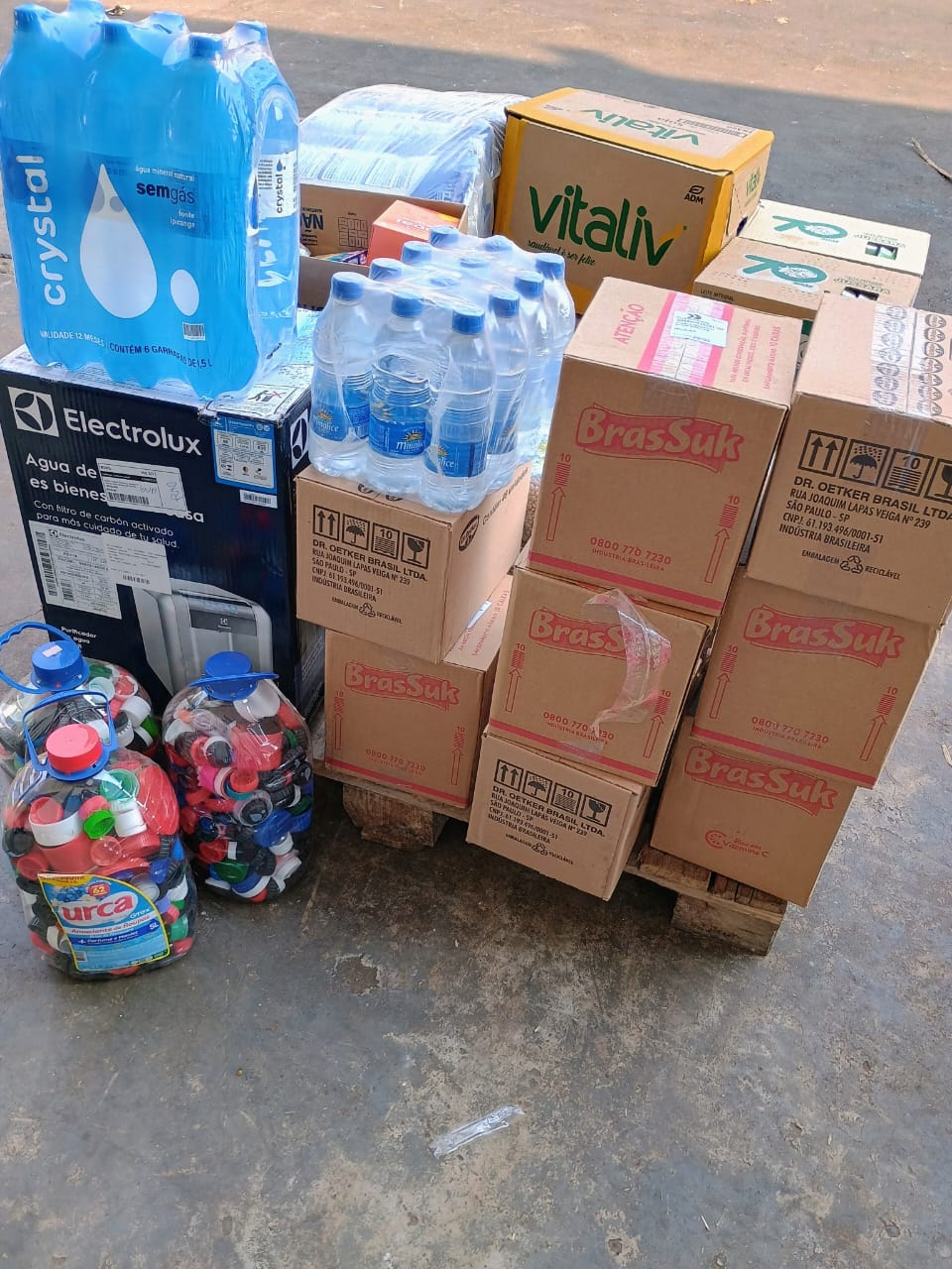 A instituição foi presenteada com 3 caixas de gelatina, 5 caixas de suco em pó, 1 fardo de água de 500ml e 1 fardo de água 1,5 L. Essa doação especial é de extrema importância para o HA.