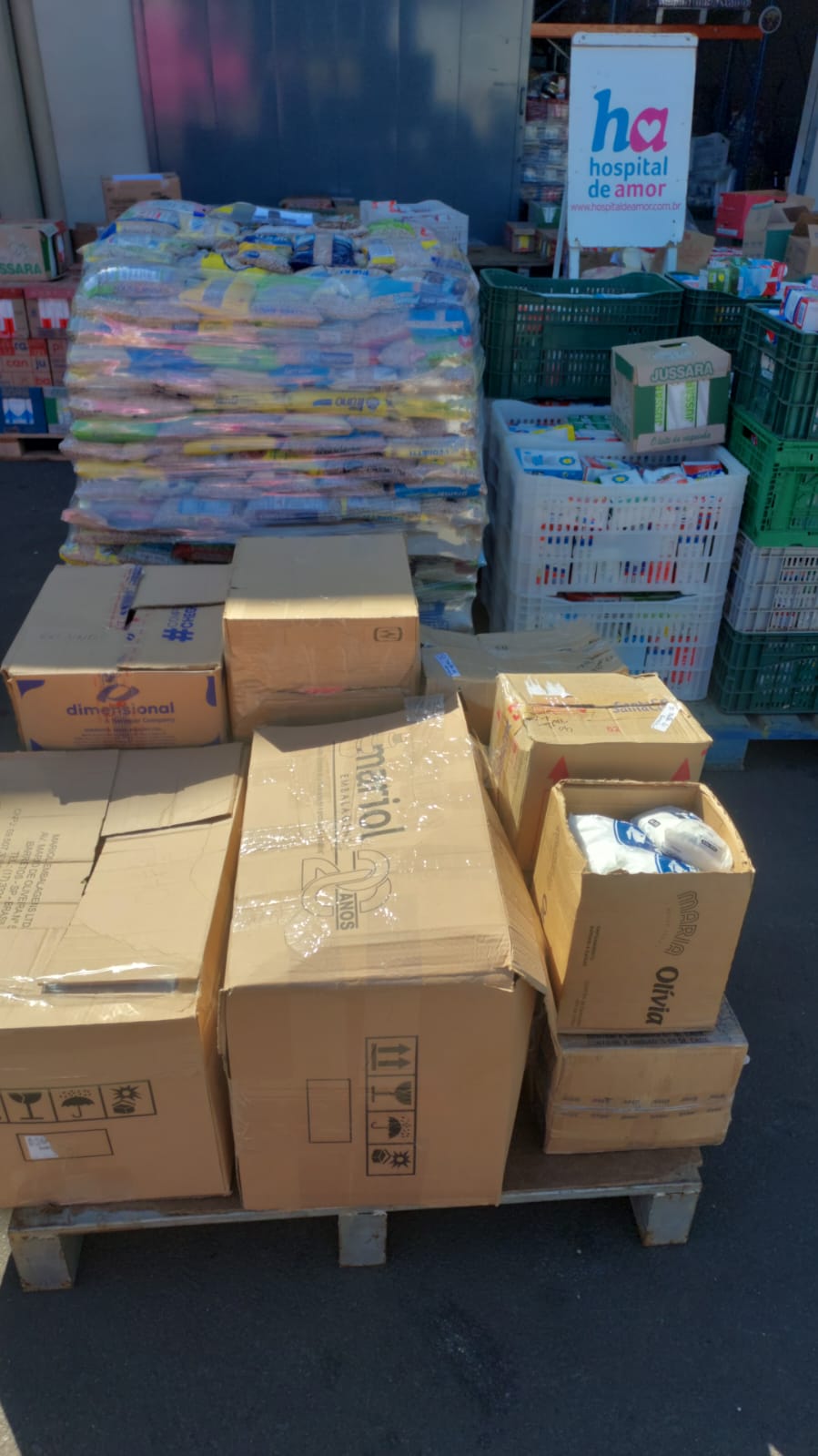 A instituição foi presenteada com 92 kg de farinha, 65 litros de óleo, 148 kg de café, 240 unidades molho de tomate, 80 pacotes de sal, 207 kg de açúcar, 1.204 litros de leite, 400 kg de arroz, 300 kg de feijão. Essa doação especial é de extrema importância para o HA.