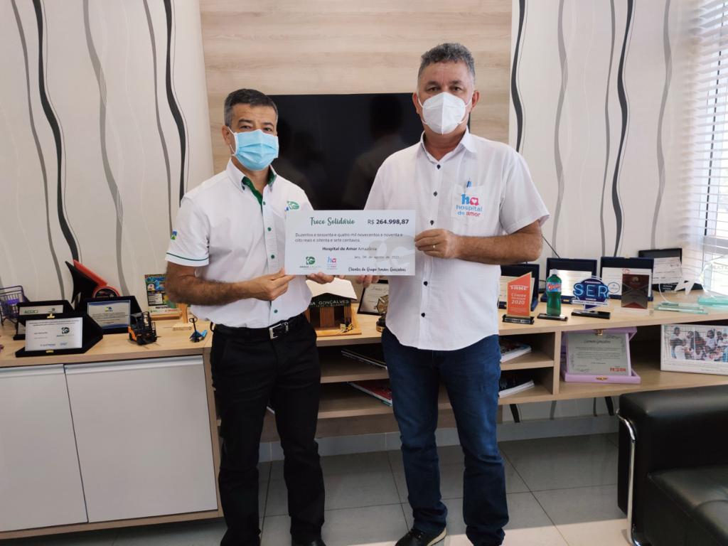 A solidariedade da região Norte do país é indiscutível e nos enche de orgulho! A rede de supermercado ‘Irmãos Gonçalves’, junto ao coordenador de leilão estadual da região Norte do Hospital de Amor, Itamar Souza Silva, realizou a ação do troco solidário e arrecadou uma grande quantia para a instituição. Esse já é o segundo repasse deste ano!