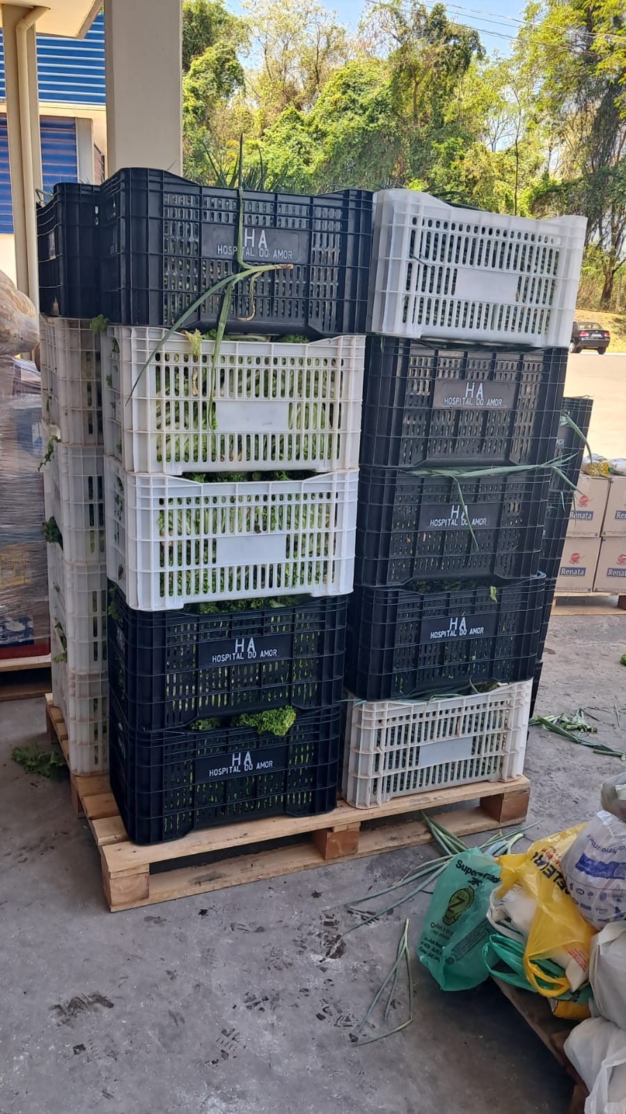 A instituição foi presenteada com 30 caixas de alface. Essa doação especial é de extrema importância para o HA.