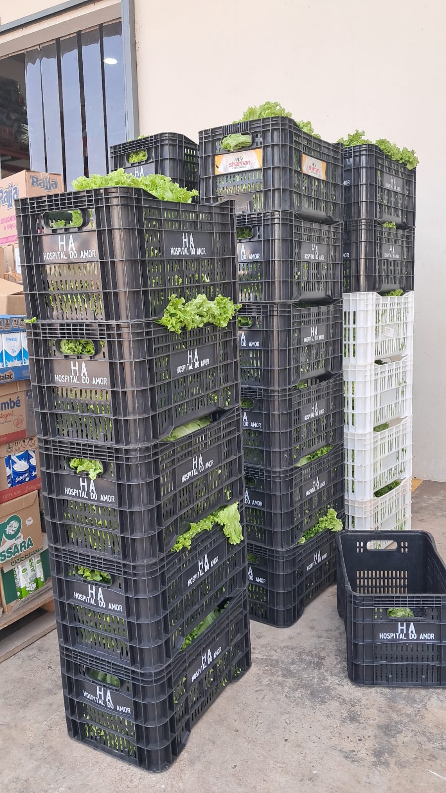 A instituição foi presenteada com 29 caixas de alface. Essa doação especial é de extrema importância para o HA.