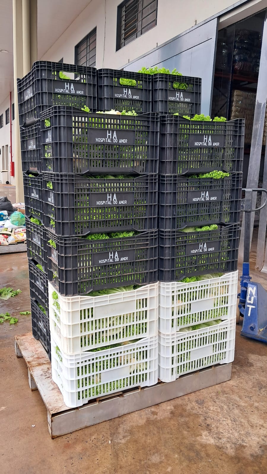 A instituição foi presenteada com 42 caixas de alface. Essa doação especial é de extrema importância para o HA.