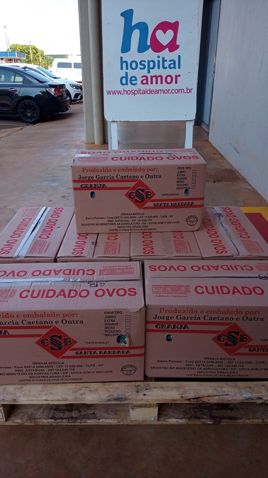 O Hospital de Amor recebeu do doador Jorge Garcia, do município de Tupã – SP, uma entrega de produtos alimentícios, presenteando o hospital com 2520 unidades de ovos. Essa doação especial é de extrema importância para a manutenção da alimentação do Hospital de Amor. Agradecemos a generosidade de todos os envolvidos, e o carinho com o Hospital!