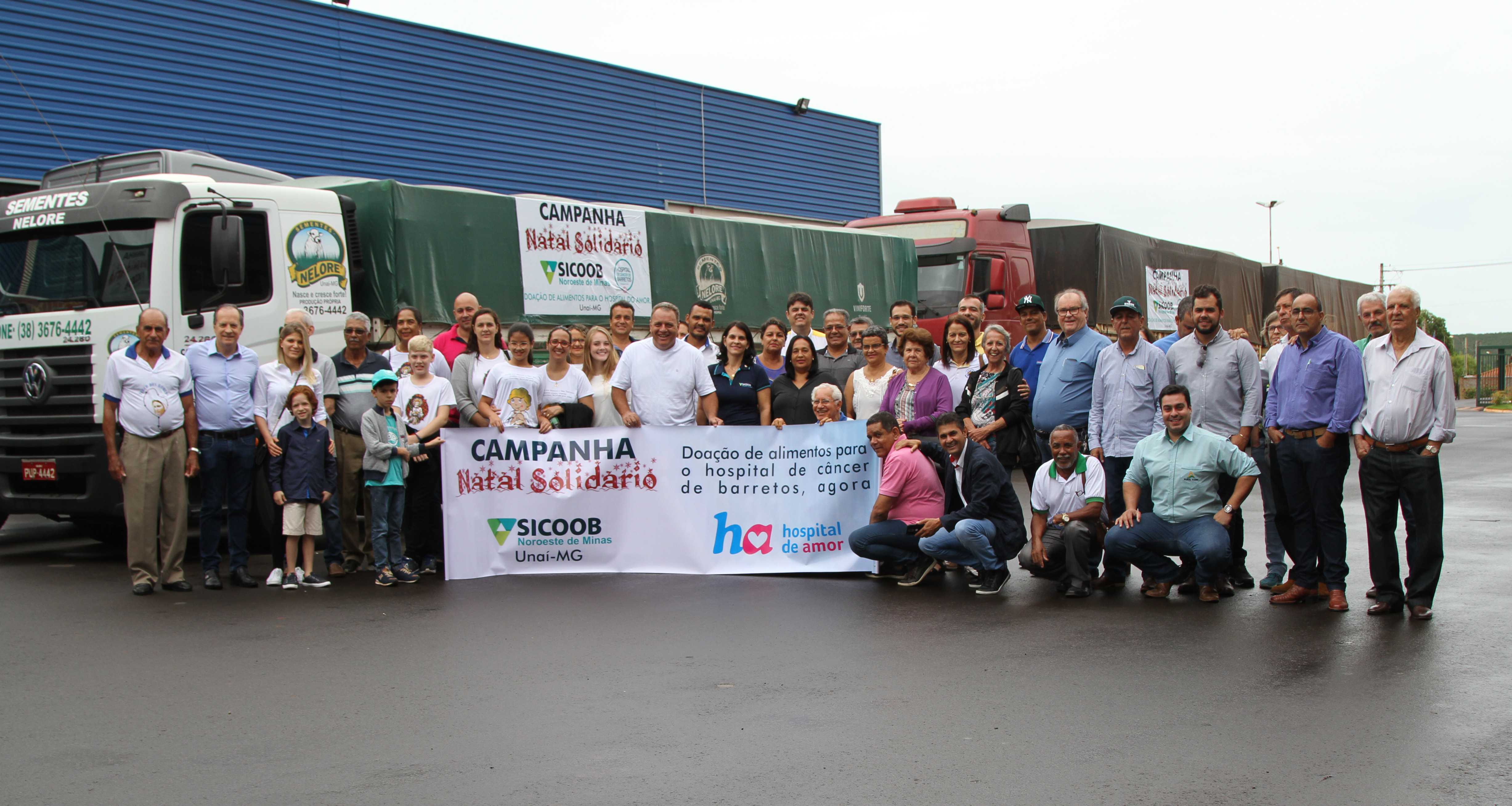 Uma ajuda de peso! A cidade de Unaí (MG) surpreendeu o Hospital de Amor. A SICOOB Noroeste de Minas realizou pela 7ª vez a campanha ‘Natal Solidário’, reunindo diversas cooperativas e pessoas generosas na arrecadação de 90 toneladas de alimentos (uma das maiores doações desse tipo já recebidas). Muito obrigado pelo imenso ato de amor.