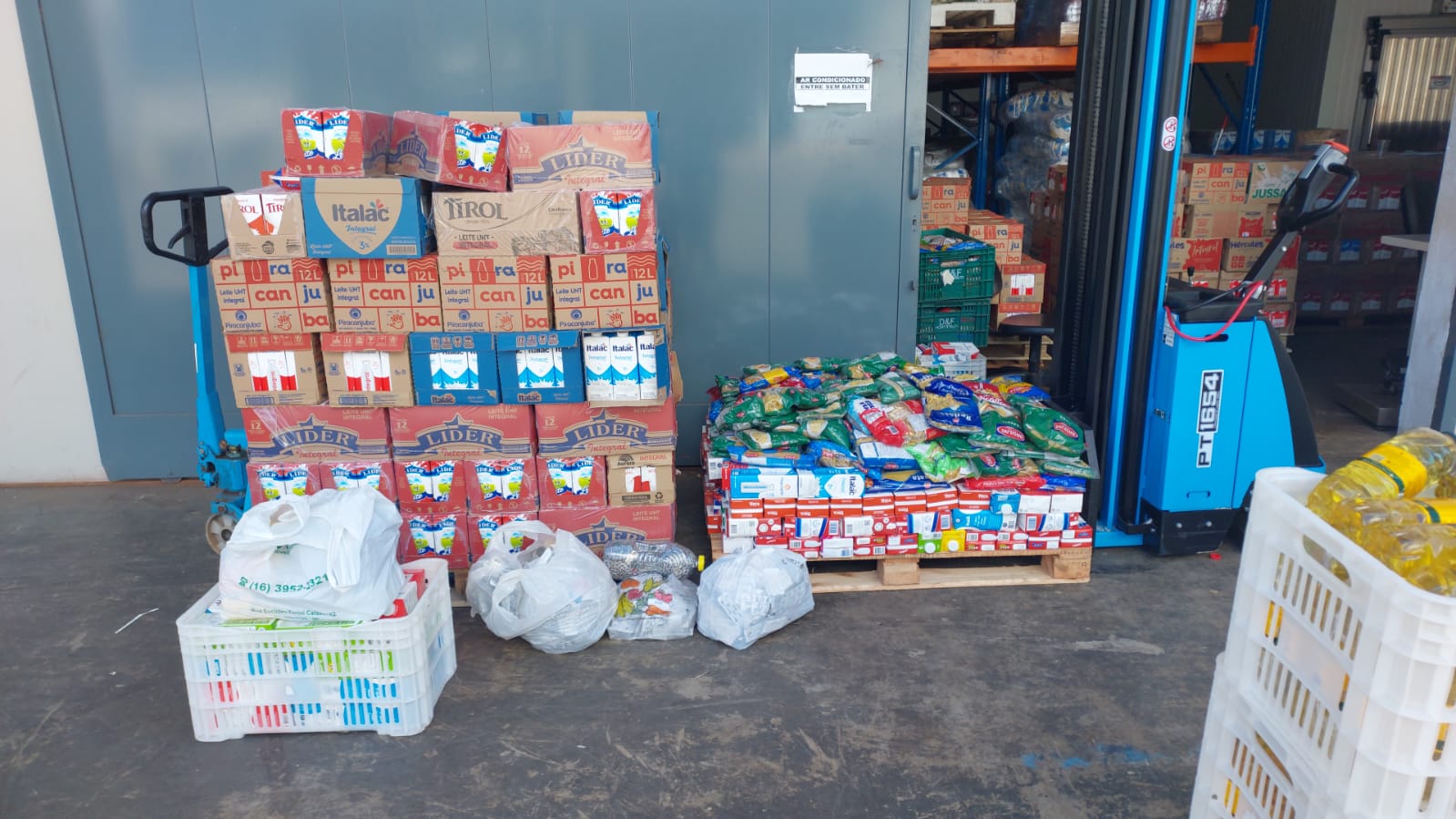 A instituição foi presenteada com 1.500 litros leite, 600 kg arroz, 300 litros óleo, 400 pacotes macarrão, 200 kg açúcar e 150 kg feijão. Essa doação especial é de extrema importância para o HA.