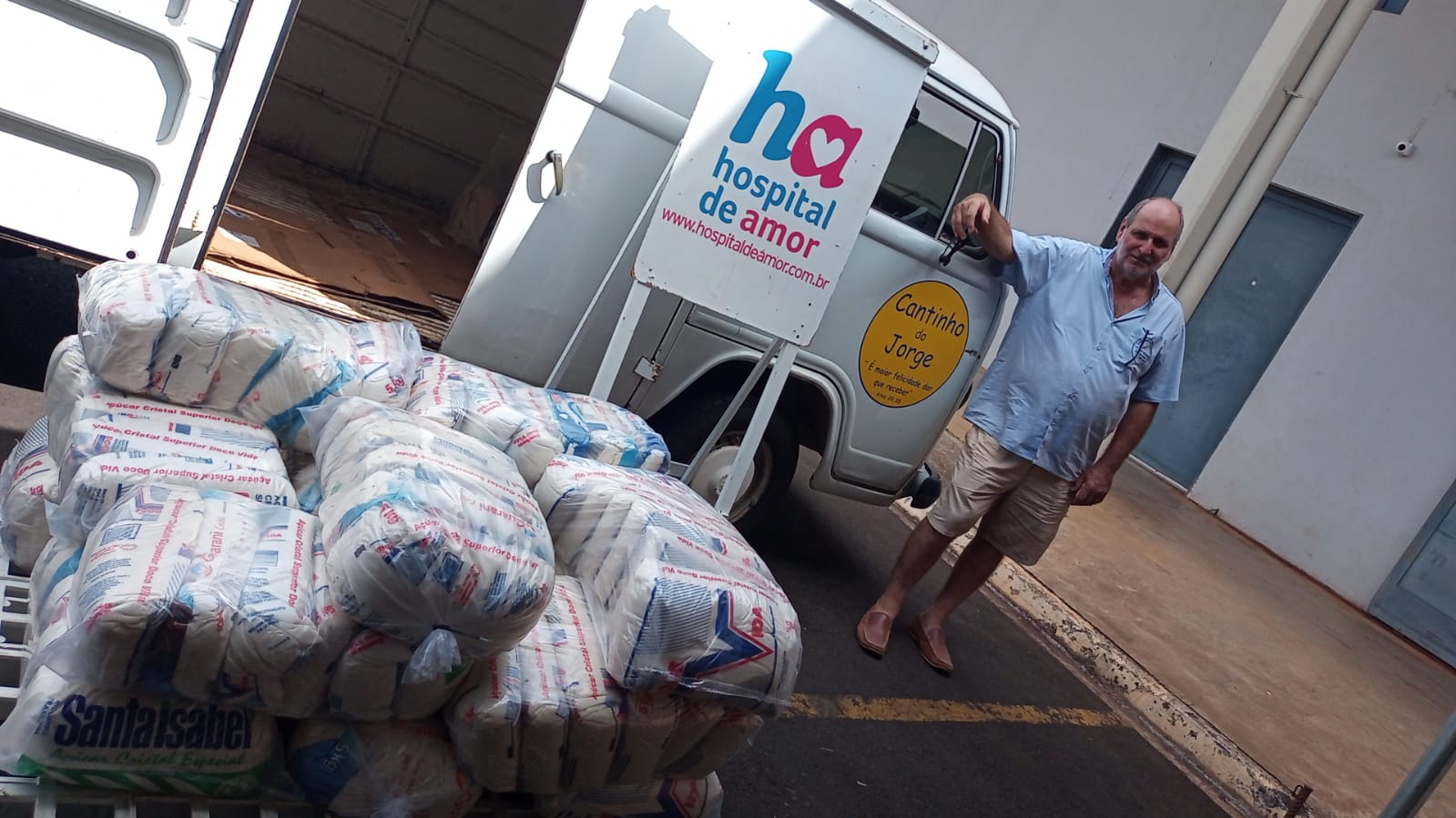 O Hospital de Amor recebeu do ‘Cantinho do Jorge’, do município de Viradouro – SP, uma entrega de produtos alimentícios, presenteando a instituição com 14 fardos de açúcar. Essa doação especial é de extrema importância para o HA.