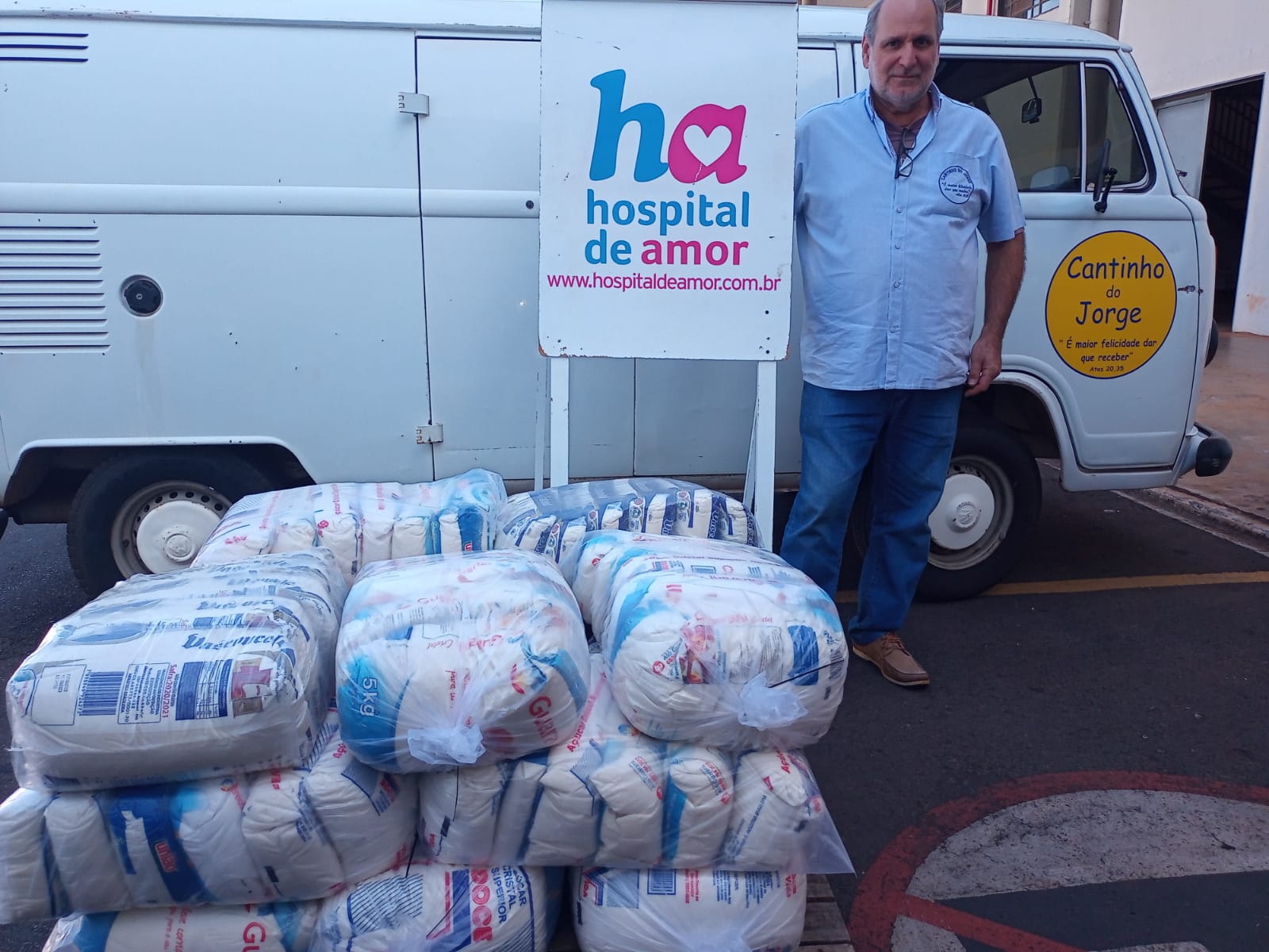 O Hospital de Amor recebeu do Cantinho do Jorge, do município de Viradouro – SP, uma entrega de produtos alimentícios, presenteando a instituição com 15 fardos de açúcar. Essa doação especial é de extrema importância para o HA.